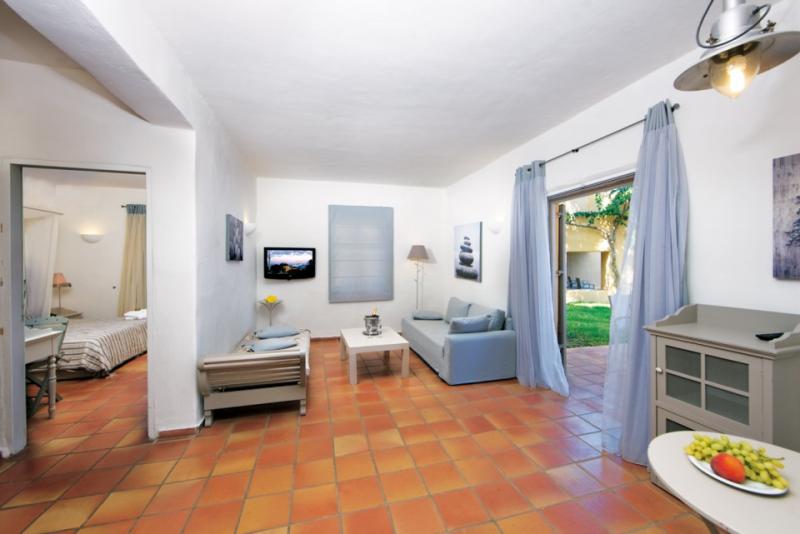 Facilitati camere : A/C, baie, uscator par, TV satelit, telefon, minifrigider, balcon la etaj si terasa la parter, seif, minibucatarie in living, iar cele de la plaja au Jacuzzi in baie.