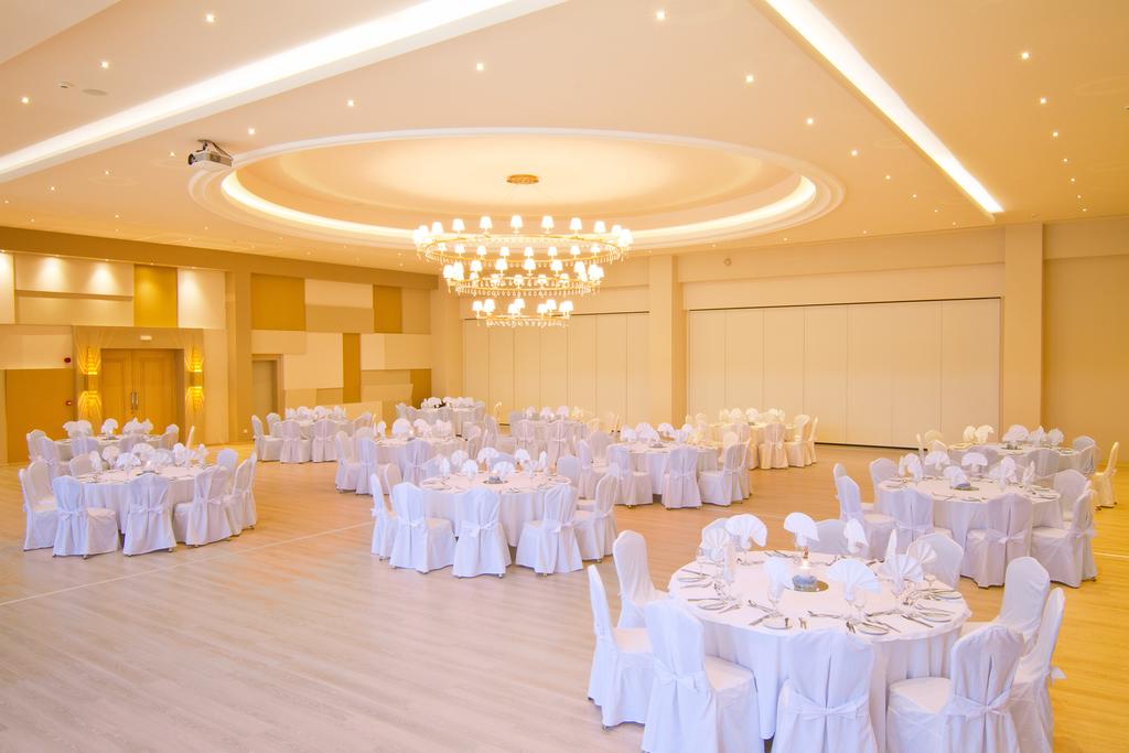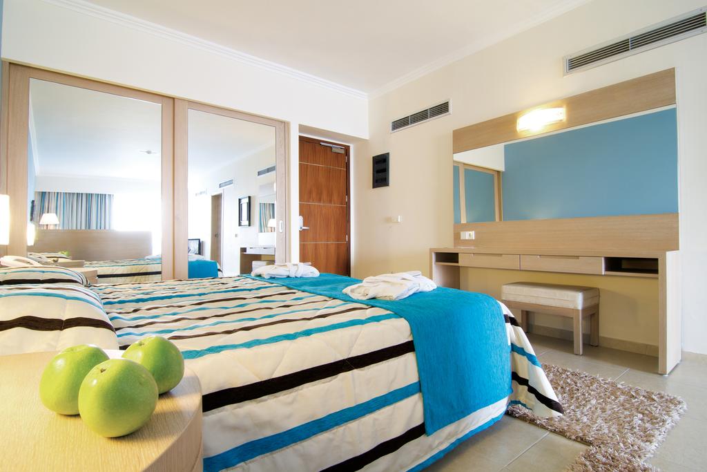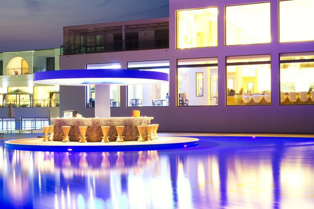 Hotelul dispune de restaurant principal bufet Athina ( nu sunt permise carucioarele pentru copii in interiorul restaurantului), room service, Pizza Corner, Restaurant la piscina care ofera snack-uri si clatite, Restaurant a la carte tematic Theatro ( contra cost), Restaurant a la carte grecesc ( gratuit, cu rezervare), bar non stop, 2 baruri la piscina, Champain bar - adults only, vata de zahar ( gratuit , de 2 ori pe saptamana), pop-corn ( gratuit , de 2 ori pe saptamana), inghetata ( gratuit , de 2 ori pe saptamana)