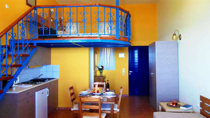 Studiourile pentru 2 persoane sunt localizate la parter si au iesire la terasa. Apartamentele pentru 2 persoane (cu posibilitate de pat suplimentar) sunt sunt forma de maisonetta cu dormitor la etaj si living cu chicineta la parter.