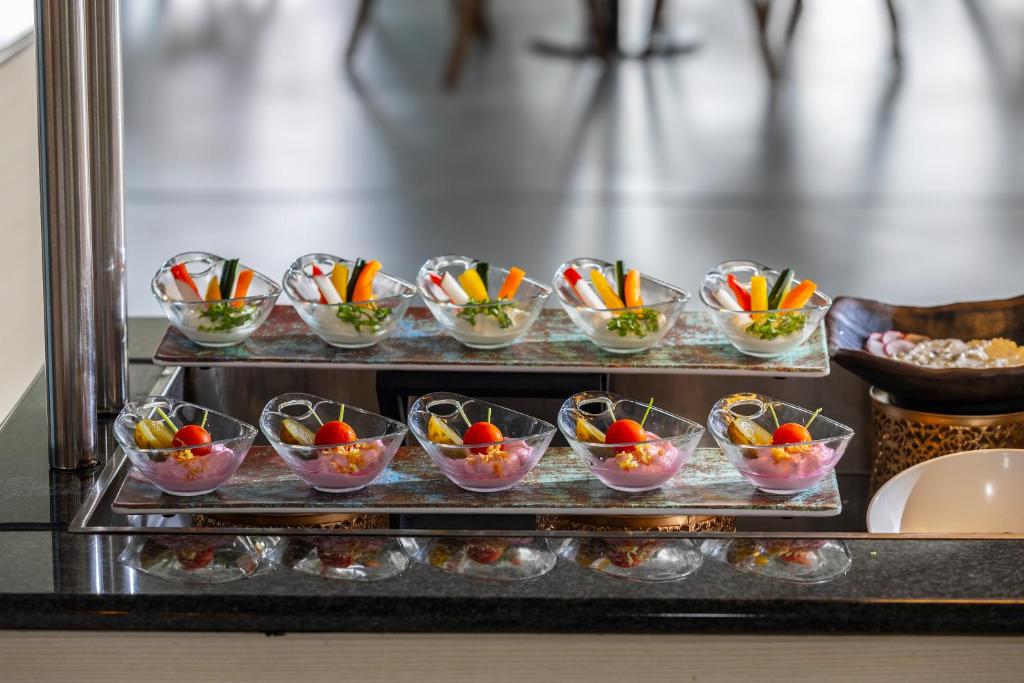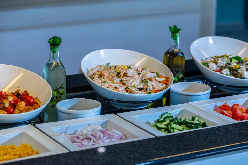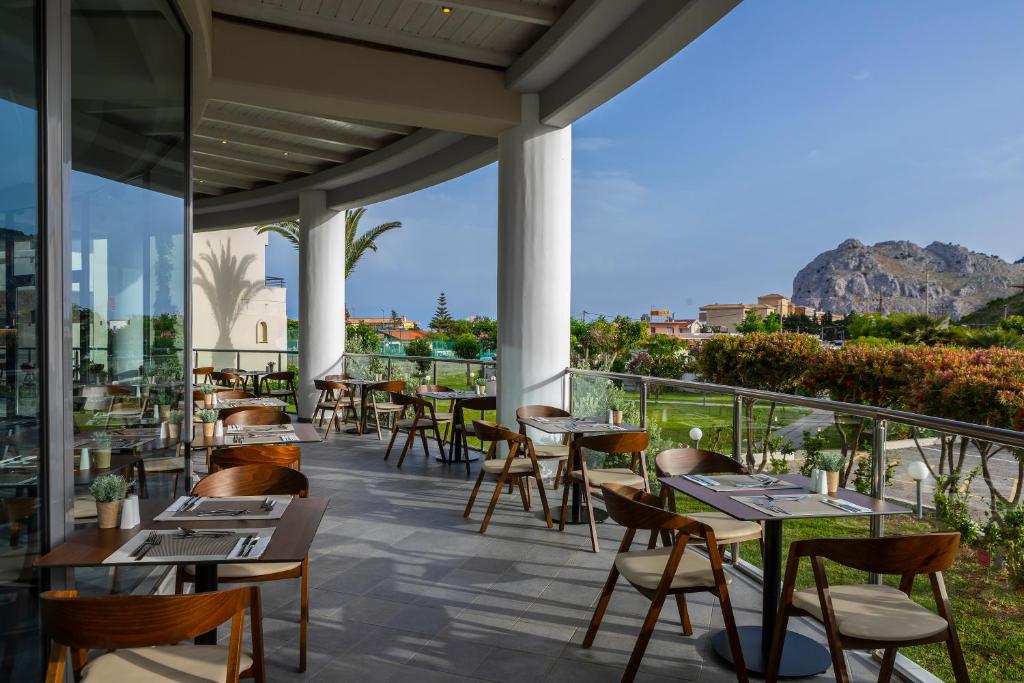Restaurantul Meltemi oferă preparate creative din bucătăria mediteraneană, iar barul servește o serie de cocktailuri și băuturi răcoritoare.