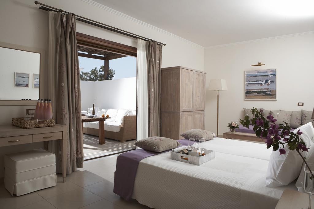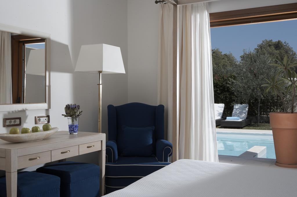 Acest complex hotelier luxos de 5 stele din Rodos oferă camere și suite elegante. Camerele clasice Mediterraneo sunt înconjurate de flori de bougainvillea, care răspândesc un parfum încântător. La suitele luxoase, care oferă toate piscină privată și cadă cu hidromasaj, se ajunge pe cărări romantice pavate cu piatră. În toate camerele se face curățenie de două ori pe zi.