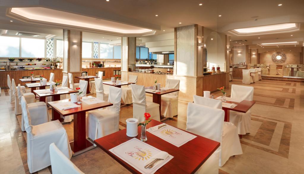 Restaurantul de specialități Stage Cooking și restaurantul à la carte Theme servesc diverse preparate grecești și internaționale. La Lounge Barul Cocktail se pot savura băuturi reconfortante și cocktailuri exotice.