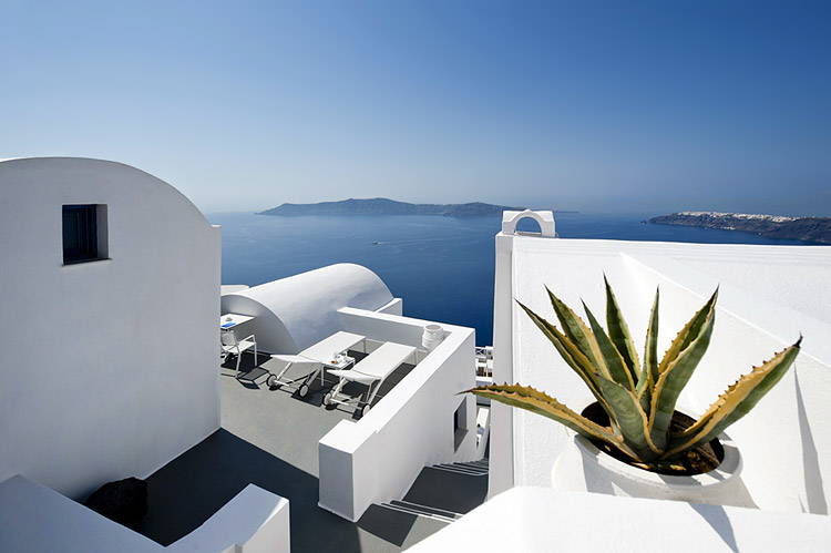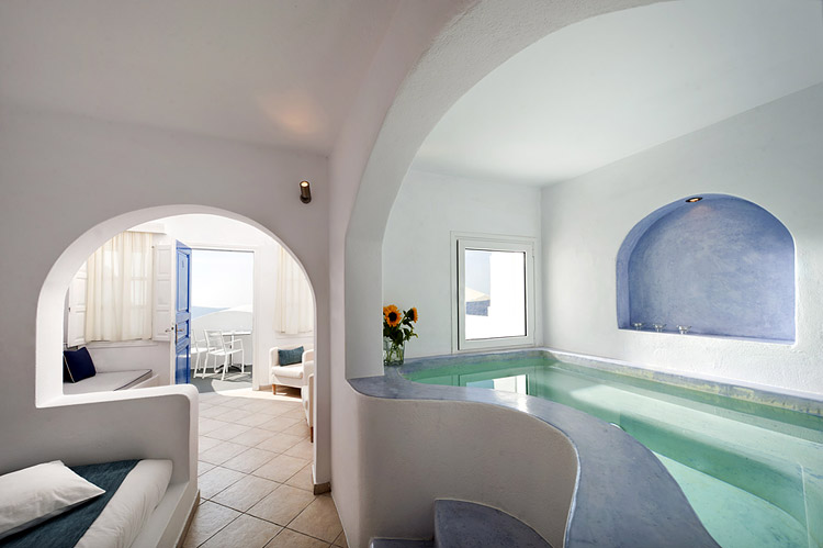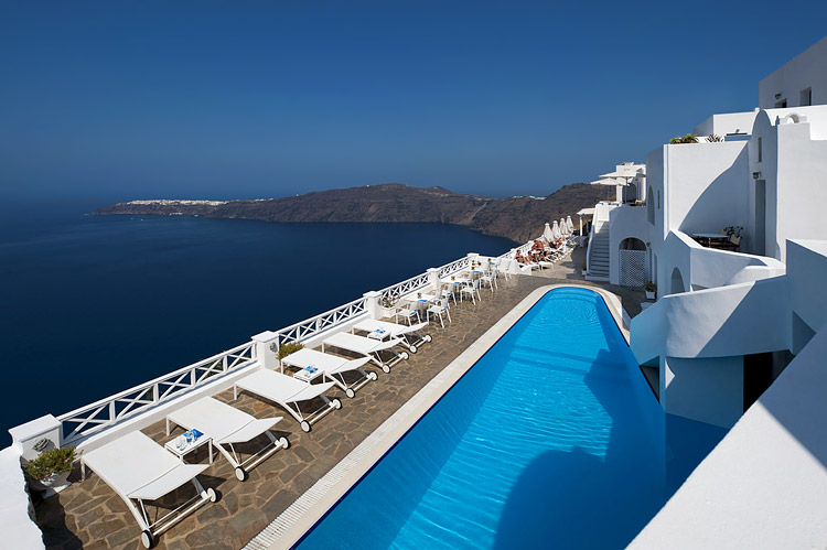Oaspetii pot utiliza o piscina in aer liber si terasa care ofera vederi frumoase catre caldera si apusul de soare. De asemenea, aici exista un snack-bar.