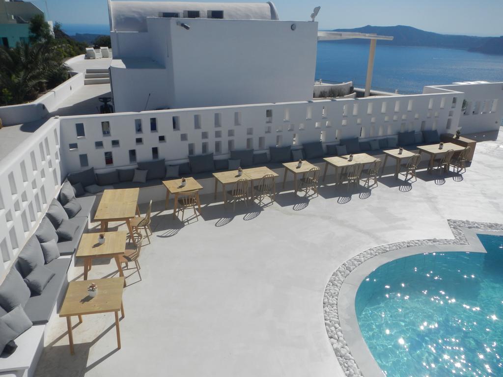 OaspeÈ›ii îÈ™i pot începe ziua cu un mic dejun tip bufet, cu ouă, È™uncă, produse greceÈ™ti, iaurt È™i cereale muesli. Micul dejun à la carte este disponibil la un cost suplimentar. În plus, oaspeÈ›ii pot savura mâncăruri mediteraneene la restaurantul de lângă piscină, care oferă vedere panoramică la caldeiră și la Marea Egee. Barul de noapte și lounge barul de la piscină sunt ideale pentru savurarea unui cocktail exotic, cu vedere spectaculoasă la asfinÈ›it.