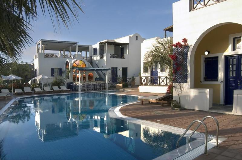O mulțime de restaurante și cafenele se află în centrul orașului Perissa, unde se poate ajunge ușor pe jos.