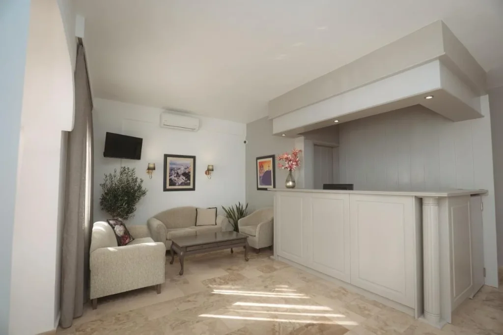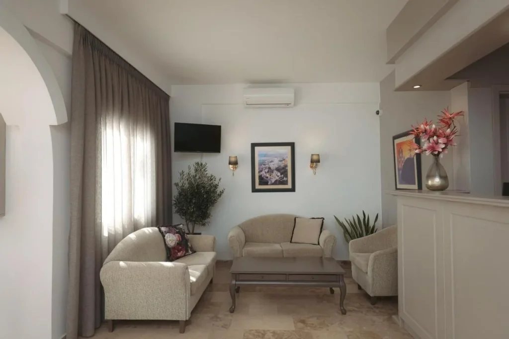 A?ezat în inima sta?iunii Perissa, pe insula de vis Santorini, acest hotel de 4 stele ofer? un sejur mediteranean autentic, într-un cadru relaxant ?i plin de farmec grecesc. Cu cele 26 de camere ale sale, hotelul îmbin? confortul modern cu atmosfera cald?, specific? insulelor Ciclade, fiind o alegere ideal? pentru cupluri ?i c?l?tori care caut? lini?te, soare ?i mare în una dintre cele mai frumoase destina?ii din lume. Proximitatea fa?? de centrul sta?iunii ?i distan?a redus? fa?? de celebra plaj? neagr? din Perissa fac din aceast? cazare o op?iune excelent? pentru o vacan?? în Santorini.