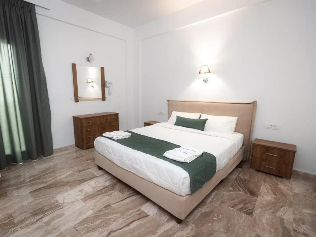Hotelul pune la dispozi?ia oaspe?ilor o piscin? în aer liber, înconjurat? de o generoas? teras? la soare, dotat? cu ?ezlonguri ?i umbrele gratuite – un loc ideal pentru relaxare în zilele toride de var?. Micul dejun este servit în restaurantul cu teras? al hotelului, sub forma unui bufet continental extins, o modalitate pl?cut? de a începe ziua. Wi-Fi-ul este gratuit ?i disponibil în hotel, astfel încât oaspe?ii r?mân conecta?i pe durata ?ederii. Recep?ia ofer? servicii complete, inclusiv room service, serviciu de trezire ?i camer? de bagaje, iar parcarea este disponibil? pentru cei care aleg s? închirieze o ma?in? pentru a explora insula. Seiful de la recep?ie poate fi închiriat contra cost pentru p?strarea valorilor în siguran??.