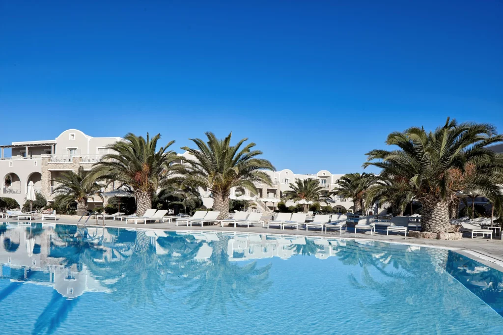 Santo Mira Mare Resort este o destina?ie de patru stele care îmbin? elegan?a mediteranean? cu c?ldura ospitalit??ii grece?ti, oferind oaspe?ilor s?i o experien?? cu adev?rat memorabil? pe una dintre cele mai spectaculoase plaje din Santorini. Amplasat direct pe celebra plaj? cu nisip negru din Perivolos, acest resort de patru stele este alegerea perfect? pentru cupluri, familii ?i c?l?torii care caut? o vacan?? autentic? în inima M?rii Egee. Culorile vibrante ale peisajului egean, combinat cu confortul modern al hotelului, fac din fiecare sejur o amintire de nepre?uit.