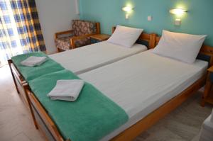 Camerele Hotelului Dimitris sunt luminoase și dispun de mobilier simplu din lemn. Acestea sunt prevăzute cu aer condiționat, un dulap și un frigider mic. Băile proprii includ un uscător de păr.