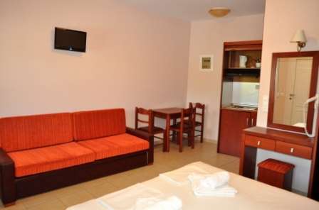 Este dotata cu aer conditioant, studiouri cu kichinete complet echipate si balcoane. Studiourile detin balcoane cu vedere la piscina. Vila dispune de bar, gradina, zona de picnic, parcare, loc de joaca pentru copii , imediat langa se gasesc magazine si restaurante.
