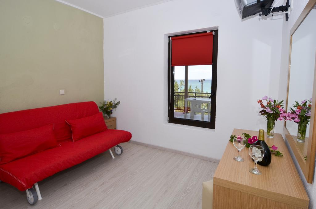 Camerele luminoase și aerisite de la Esperia oferă vedere la mare sau la pădure. Acestea sunt dotate cu un TV prin satelit, un minifrigider și o baie privată cu duș.