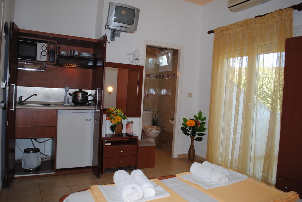 La studiourile Pefkari oaspeÈ›ii pot găsi un bar/restaurant. La plajă sunt disponibile È™ezlonguri È™i umbrele, iar oaspeții pot practica sporturi nautice. Proprietatea poate organiza excursii cu barca privată la Agio Oros È™i insula Panagia.
