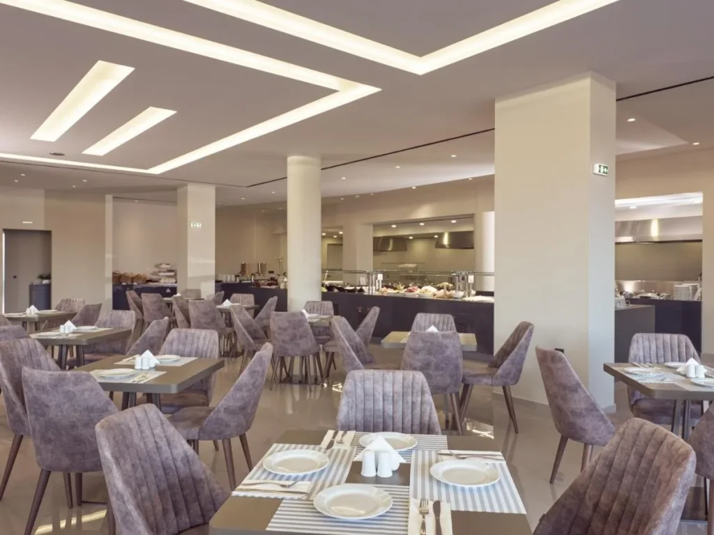 Cazarea la Zante Sun Hotel în regim All Inclusive acoper? toate nevoile zilnice ale oaspe?ilor, f?r? costuri suplimentare. Mesele principale – micul dejun, prânzul ?i cina – sunt servite în formula bufet la restaurantul hotelului, cu o selec?ie variat? de preparate pentru toate gusturile. Pe parcursul zilei este disponibil? ?i o gustare u?oar?, pentru momentele dintre mese. B?uturile alcoolice ?i nealcoolice locale selectate sunt incluse în pachet în intervalul 10:00–23:00, putând fi consumate atât la barul piscinei, cât ?i la lobby bar. Ca în majoritatea hotelurilor grece?ti, b?uturile interna?ionale de marc? nu sunt incluse în pachetul all inclusive ?i se pot comanda contra cost.
