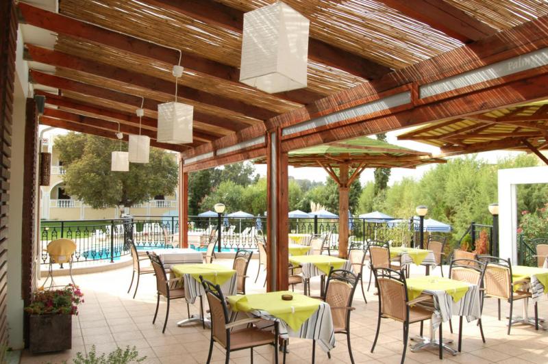 Restaurantul Palmyra servește mâncăruri grecești și internaționale pe terasa de pe acoperișul hotelului. De asemenea, oaspeții pot savura băuturi răcoritoare, bere și cocktailuri exotice în zona cu aer condiționat a barului.