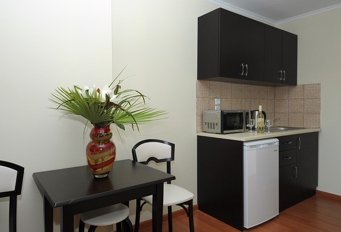 Hotelul ofera spre cazare 175 de apartamente cu 1 dormitor, 2 dormitoare si studiouri. Toate apartamentele sunt moderne si dotate cu bucatarie complet echipata (cuptor microunde, prajitor paine, cuptor, ceainic, frigider), telefon, TV-sat, A/C, baie cu cada/dus, balcon/terasa.