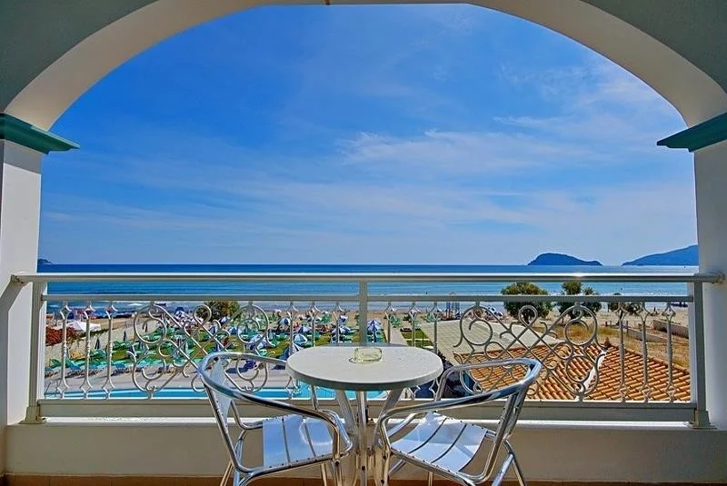 Camera Dubl? cu Vedere la Mare – cea mai c?utat? op?iune de cazare, cu balcon sau teras? ?i vedere direct? spre mare, pentru a te bucura de panorama albastr? a M?rii Ionice chiar din camera ta.