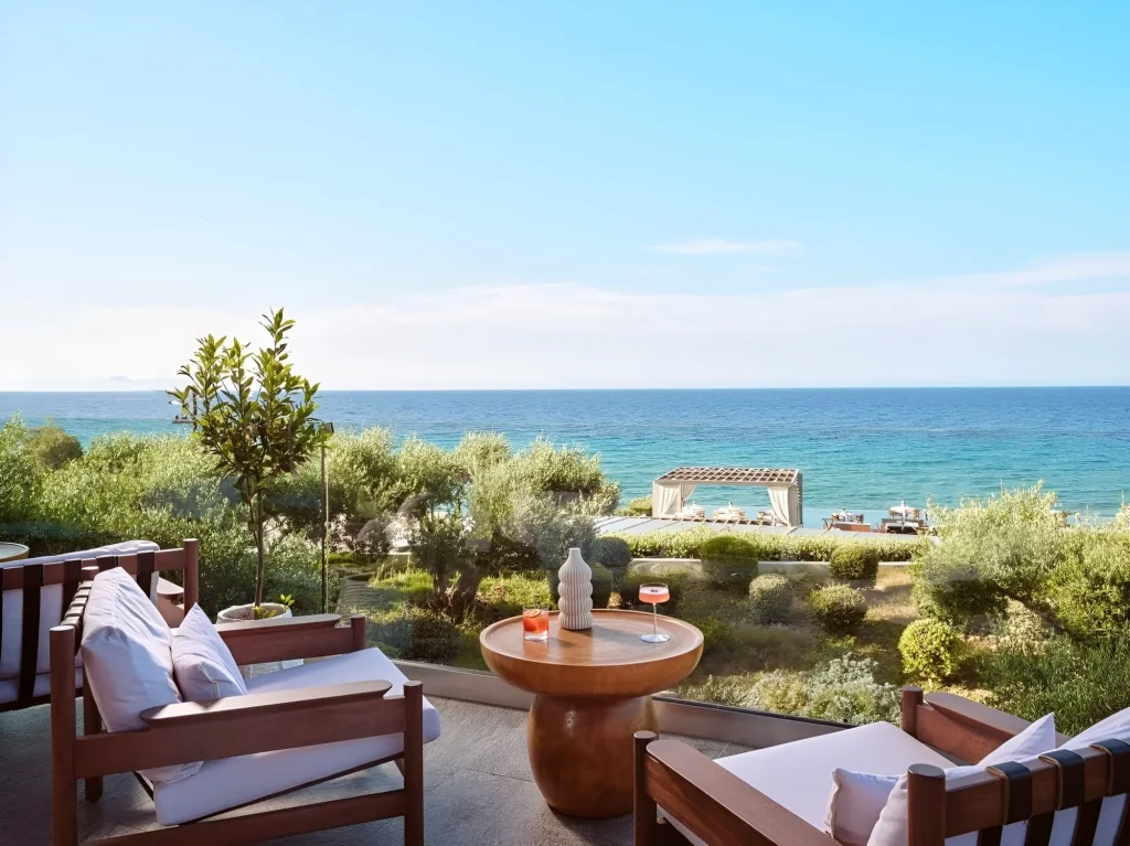 Suita Grand Royal cu vedere la mare si piscina privata - varful ofertei de cazare a hotelului, cu o suprafata impresionanta de 160 m², terasa ampla si piscina privata. Aceasta suite reprezinta apogeul luxului, oferind o experienta de vacanta de exceptie intr-un cadru regal, cu panorama nemasurata a Marii Ionice.