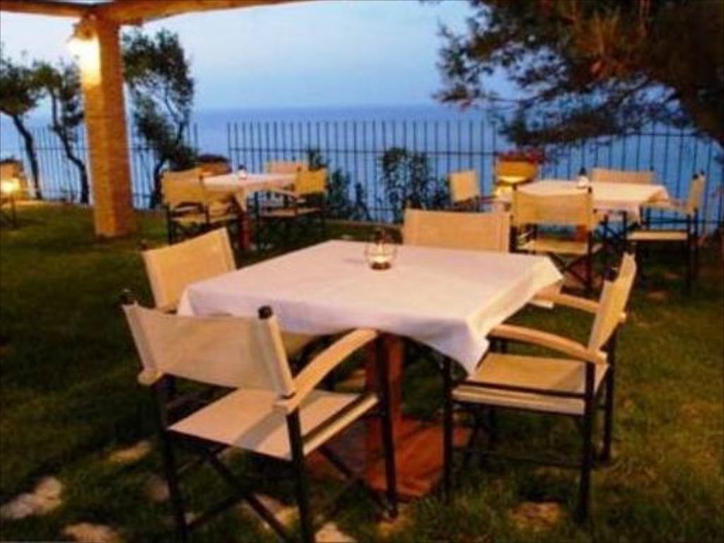 Restaurantul hotelului servește mic dejun continental, englezesc și grecesc, precum și mâncăruri tradiționale pentru prânz și cină, pe care oaspeții le pot savura pe terasa încântătoare. Barul de la piscină oferă băuturi, cocteiluri și gustări.