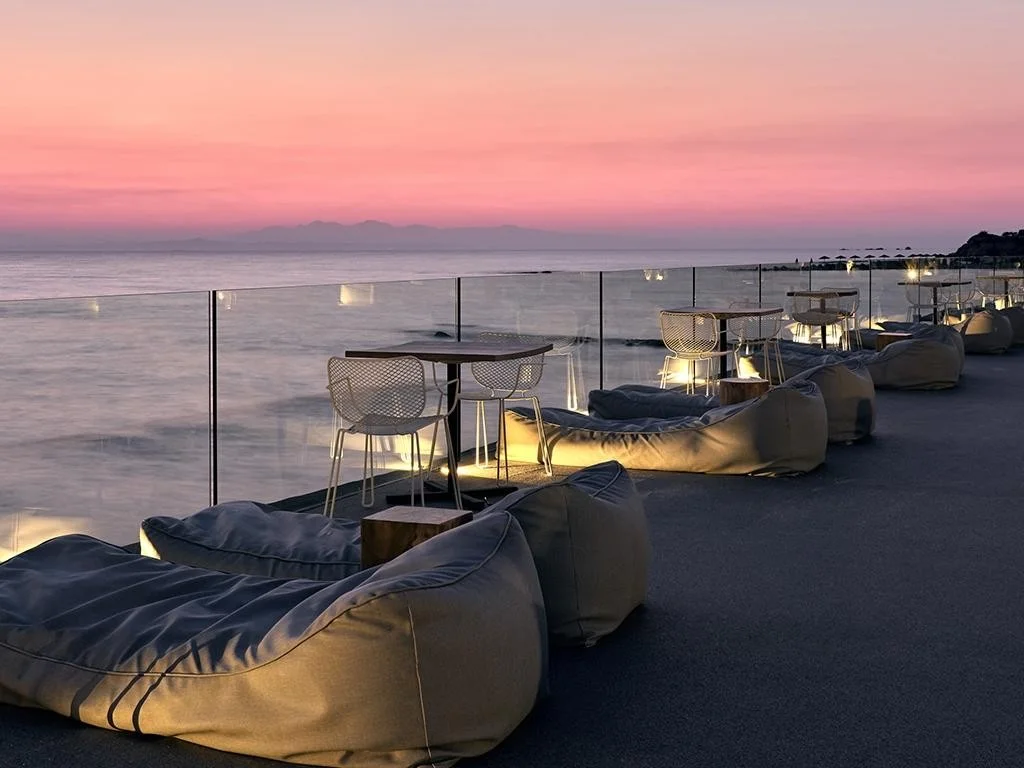 Camera Dubla Deluxe, vedere la mare — cea mai cautata varianta de camera standard, cu vedere directa si panoramica catre Marea Ionica. Toate dotarile camerei Deluxe sunt prezente, iar priveliste la rasarit devine un privilegiu zilnic.