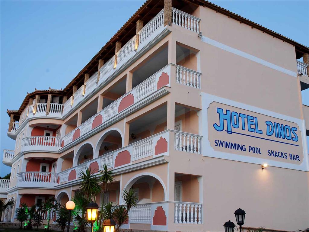 Hotel Dinos este amplasat pe coasta de est insulei Zakynthos, in statiunea Tsilivi, intr-o zona linistita cu gradini frumos amenanjate, la aproximativ 100 m de cele mai apropiate magazine, 400 m de plaja, centrul statiunii Tsilivi si de cea mai apropiata statie de autobuz, 3 km de orasul Zakynthos si la 5 km fata de aeroport.