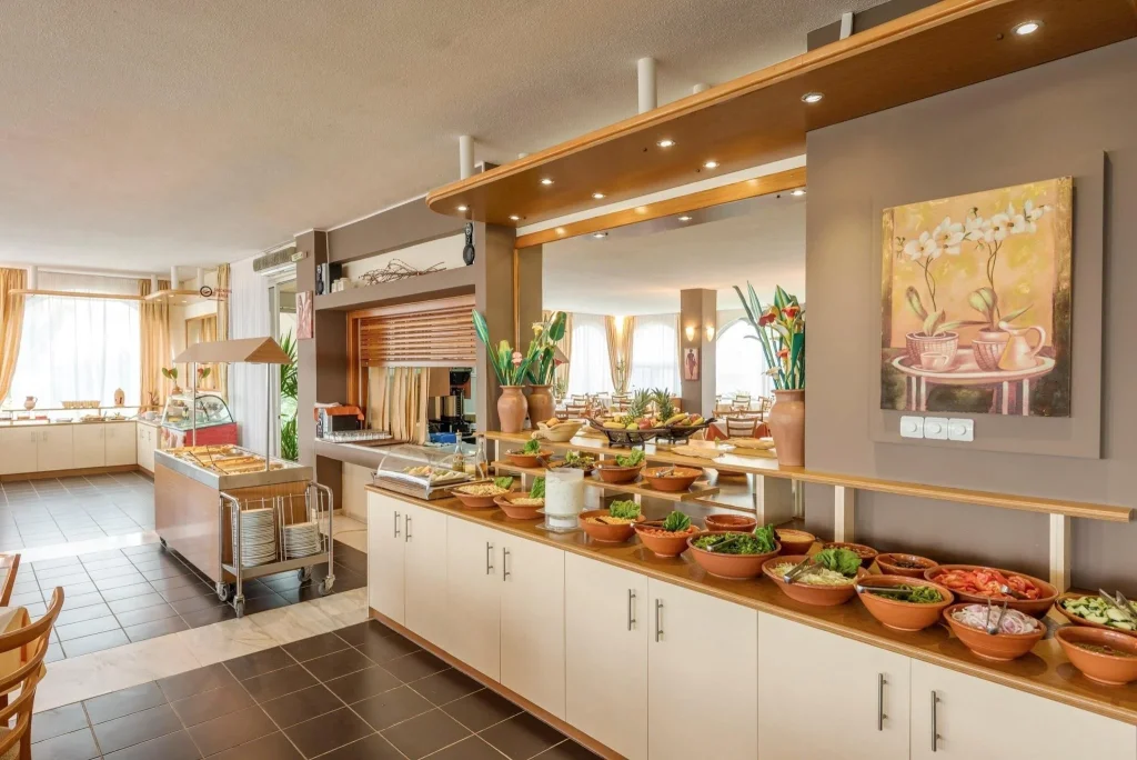 Vacanta la Hotel Pavlina Beach se desfasoara in regim All Inclusive, care include mesele principale servite la bufet: mic dejun, pranz si cina. Pe parcursul zilei, oaspetii beneficiaza si de doua gustari usoare, una in intervalul 10:00-12:00 si alta intre 16:00-18:00, astfel incat nimeni sa nu ramana flamand. Bauturile alcoolice si nealcoolice locale selectate sunt incluse in pachet in intervalul orar 10:00-23:00. Ca in cazul majoritatii resorturilor all inclusive, bauturile internationale de import nu sunt incluse in pachet si pot fi achizitionate separat. Acest regim generos asigura un sejur fara griji, in care bugetul de vacanta ramane sub control.