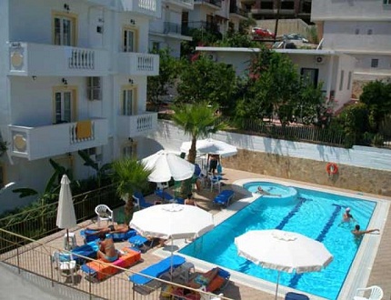 Hotelul detine 14 apartamente, lobby, piscina, umbrele si paturi de plaja, gradina, parcare.