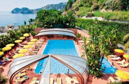 Caracteristici hotel: deschis in 1992, 88 camere, 4 restaurante, 3 baruri, piscina (cu plata intre orele 18:00 – 20:00), transport zilnic gratuit cu microbuzul in Taormina. Pentru sezlonguri si umbrelute pe plaja se plateste suplimentar.