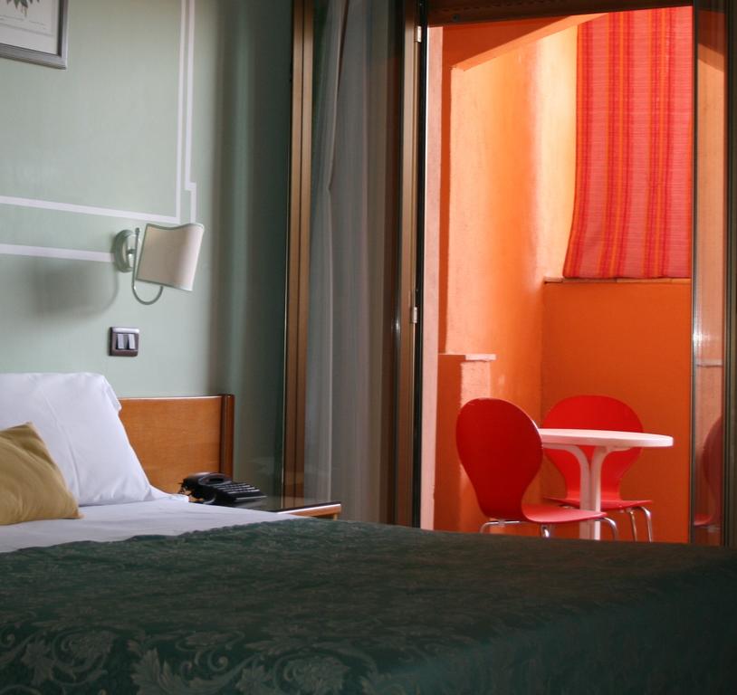 Camerele sunt confortabile și funcționale, oferind aer condiționat și mobilier clasic și elegant. Oferă TV prin satelit și baie proprie cu uscător de păr. Unele camere au balcon sau terasă privată cu vedere la mare.