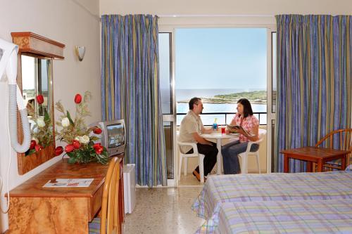 Hotelul ofera cazare in 79 camere duble, single, triple sau cvadruple, cu vedere la piscina si la gradina, insa majoritatea cu panorama minunata asupra Marii Mediterane, dotate cu baie proprie, A/C, TV color prin satelit, uscator de par, telefon direct international, radio, frigo-bar contra cost si seif contra cost