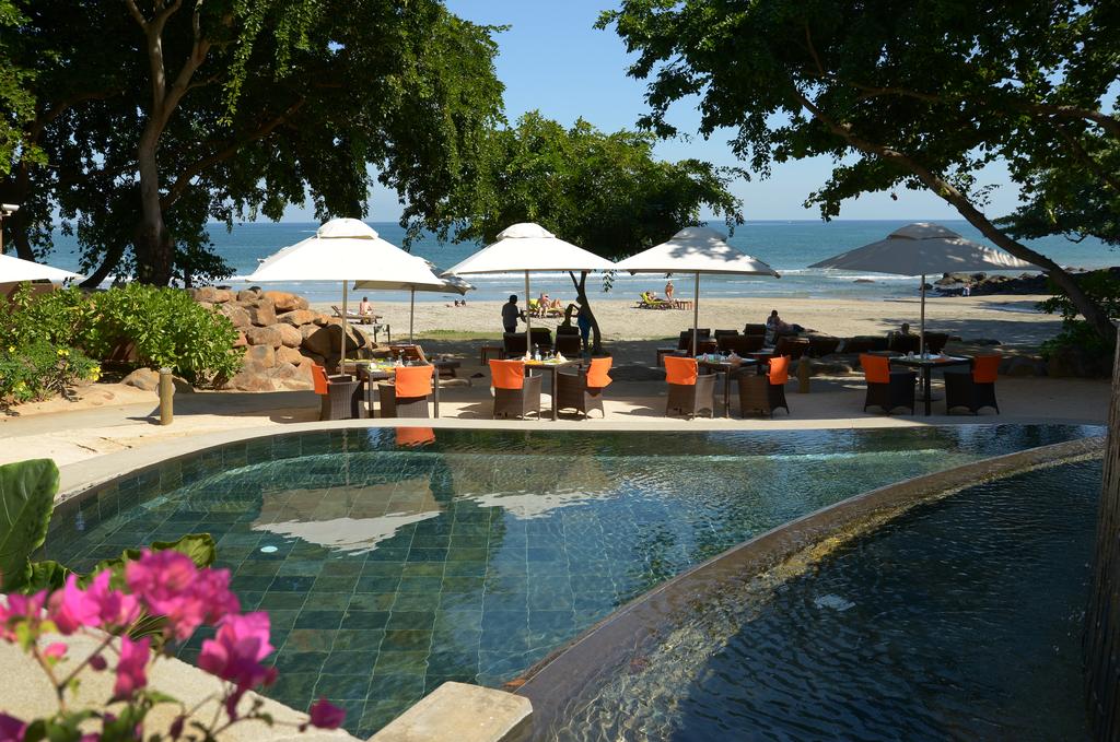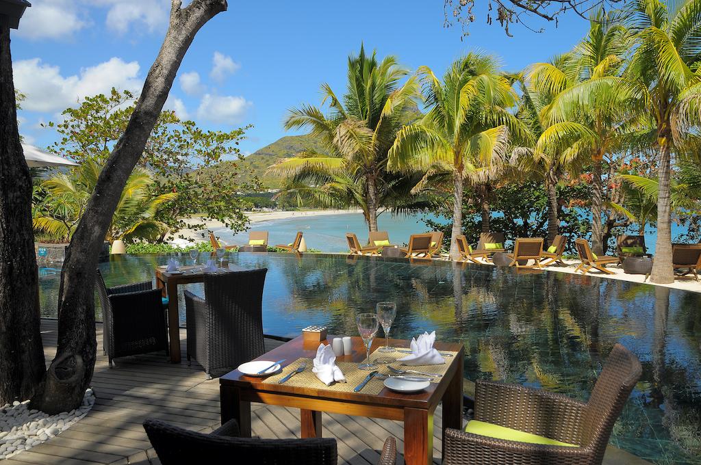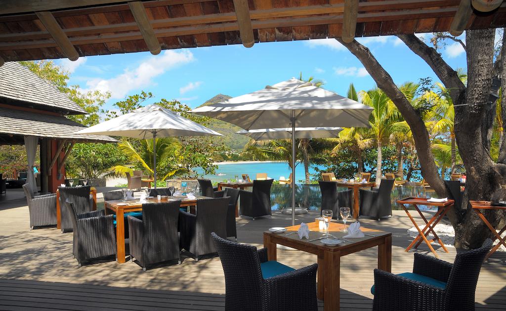 Restaurantul La Madrague oferă preparate din bucătăria internaÈ›ională, cu un accent creol, Restaurantul La Plage serveÈ™te mese uÈ™oare în jurul piscinei, iar la Le Bar, oaspeții se pot bucura de cocktailuri, admirând vederea la golf.