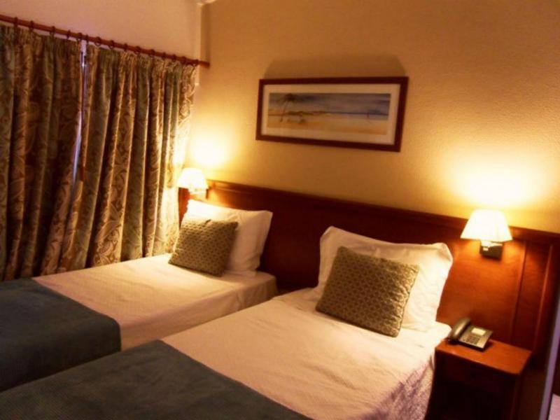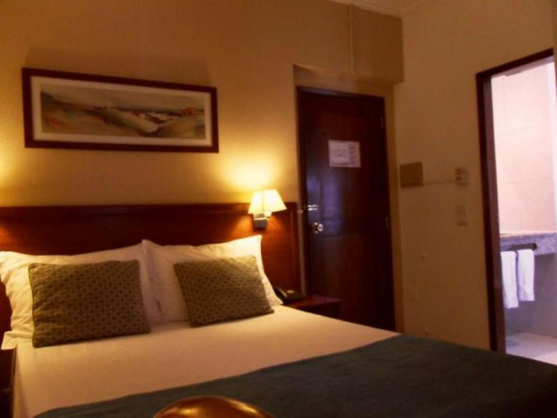 Camerele de la Hotelul S. Mamede sunt decorate cu pături albastre și includ un birou de lucru, aer condiționat și o baie privată.