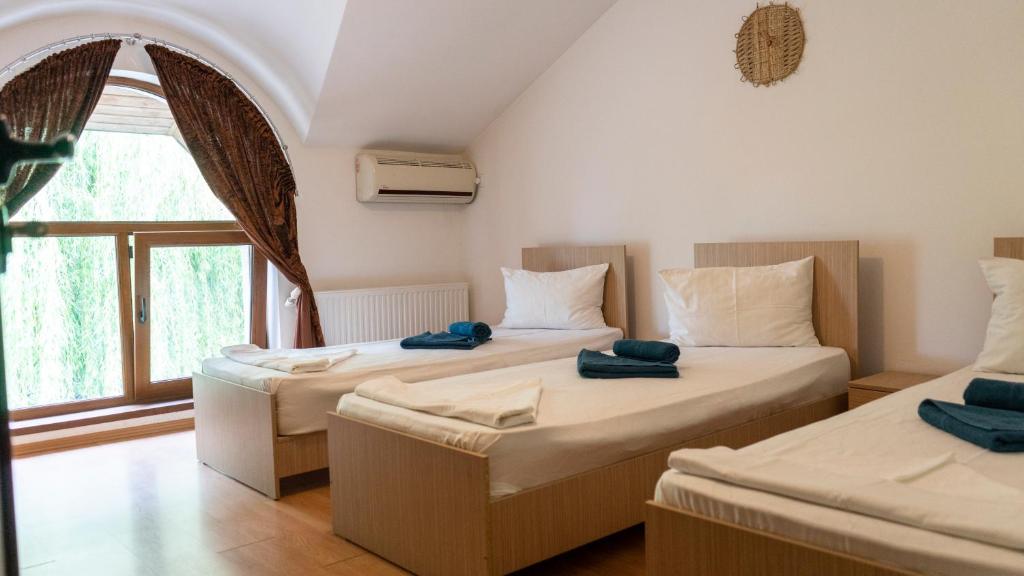 Camerele pensiunii sunt prevăzute cu dulap. Toate camerele de la Califarul Alb au aer condiționat și birou.