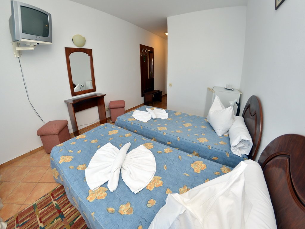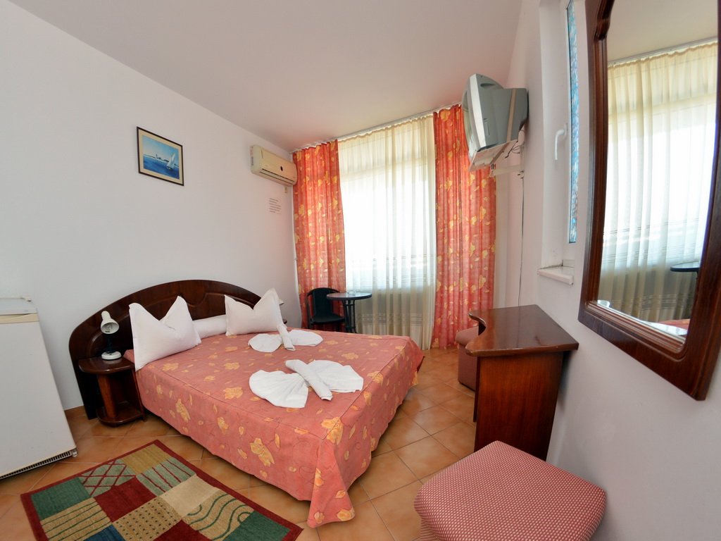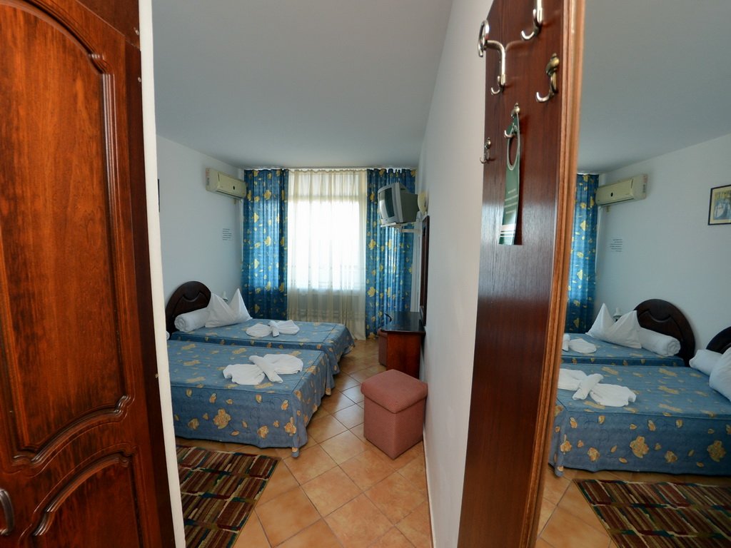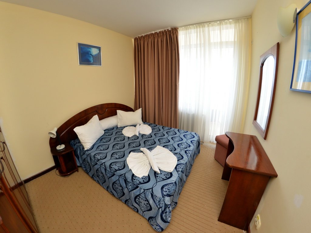 Hotel Forum dispune de doua tipuri principale de unitati de cazare, toate beneficiind de vedere partiala la mare:Camera dubla - disponibila cu doua paturi twin sau pat matrimonial, este dotata cu baie proprie cu dus, televizor, minibar, balcon cu mobilier, plasa impotriva insectelor si aer conditionat. Este solutia perfecta pentru cupluri sau doi prieteni care vor sa se bucure de sejur fara compromisuri.Apartamentul - o alegere mai spatioasa, format din dormitor cu pat matrimonial si living cu canapea extensibila, ceea ce il face potrivit si pentru familiile mici. Baia este dotata cu cada, iar livingul beneficiaza de aer conditionat, minibar si televizor, plus balcon. Conexiunea Wi-Fi gratuit este disponibila atat in camere, cat si in toate spatiile publice ale hotelului. Check-in-ul se face incepand cu ora 16:00, iar check-out-ul pana la ora 12:00.