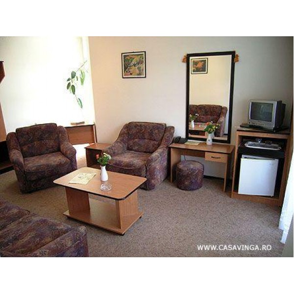 Situata chiar în centrul staÈ›iunii Poiana Brasov, vis-a-vis de restaurantul Åžura Dacilor, cu o priveliste minunata spre pârtia Subteleferic Pensiunea Casa Vinga, ofera spre cazare 14 spatii, distribuite in camere duble, apartamente cu living È™i o cameră single.