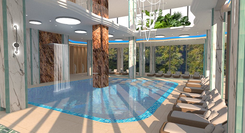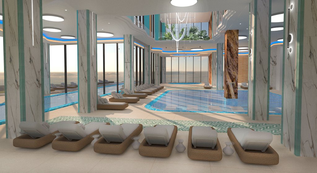 Cele 8 etaje ale cladirii vor gazdui facilitati premium, oferind fiecarui oaspete un sejur de neuitat. In completarea experientei de cazare, hotelul va include o zona de SPA proprie, cu piscine interioare si exterioare, o zona de tobogane interioare si un spatiu splash destinat celor mici.