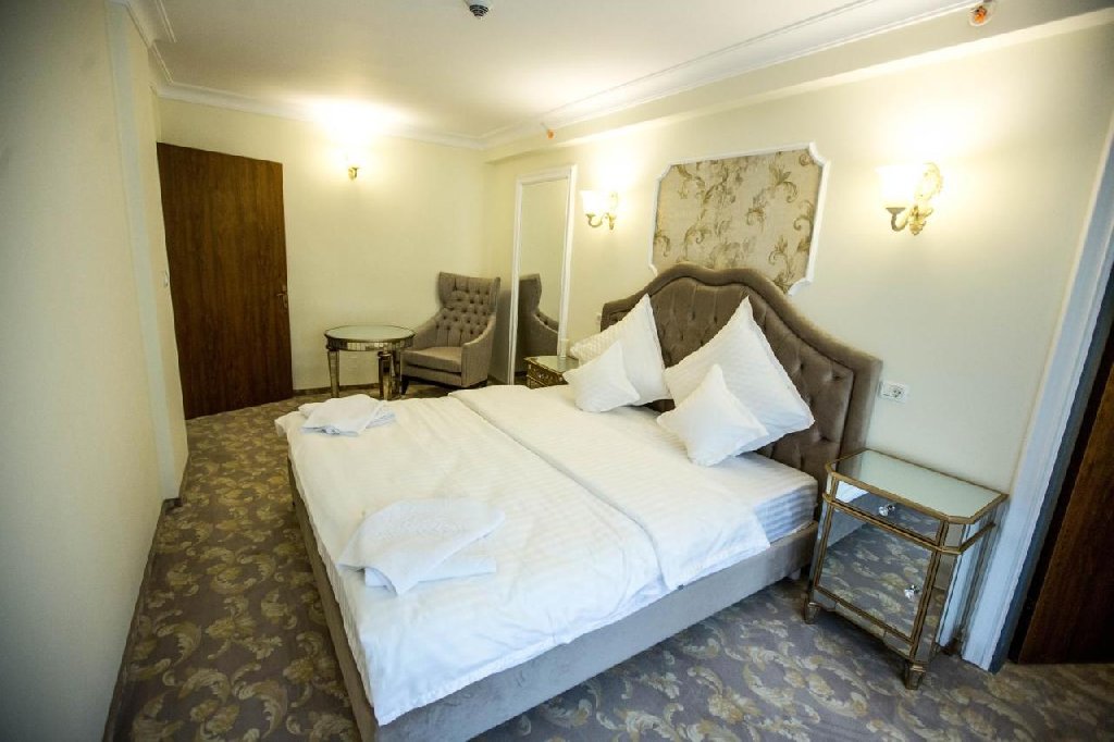Hotelul dispune de 185 de camere duble, 8 suite și 13 apartamente, fiecare decorat în stil clasic elegant, cu finisaje rafinate și textile de calitate. Camera Dublă Matrimonială — pat dublu matrimonial, aer condiționat, TV cu ecran plat, WiFi gratuit, minibar, seif, telefon, baie privată cu produse de toaletă, halate, papuci și uscător de păr; unele camere dispun de balcon cu vedere spre stațiune sau spre munte. Capacitate maximă: 2 adulți și 1 copil până în 12 ani. Camera Dublă Twin — configurație identică cu dubla matrimonială, dar cu două paturi separate, ideală pentru prieteni sau colegi de călătorie. Suita — compusă din două camere comunicante, concepută special pentru familiile cu copii; include un salon cu canapea extensibilă, birou de lucru, minibar, TV, WiFi, dormitor matrimonial, două balcoane cu priveliști montane deosebite, baie dotată cu halate, papuci, uscător și produse cosmetice. Apartamentul — spațiu generos structurat într-un living cu canapea extensibilă, dormitor matrimonial și dressing generos, mobilat rafinat pentru un sejur în deplină relaxare.