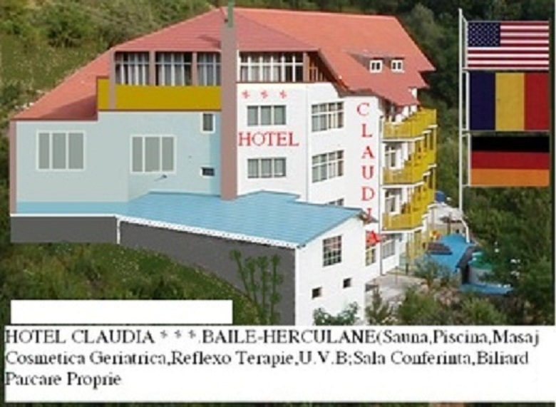 Hotelul Claudia, situat in partea de N-E a statiunii Baile Herculane, intr-un cadru minunat, inconjurat de munti.
