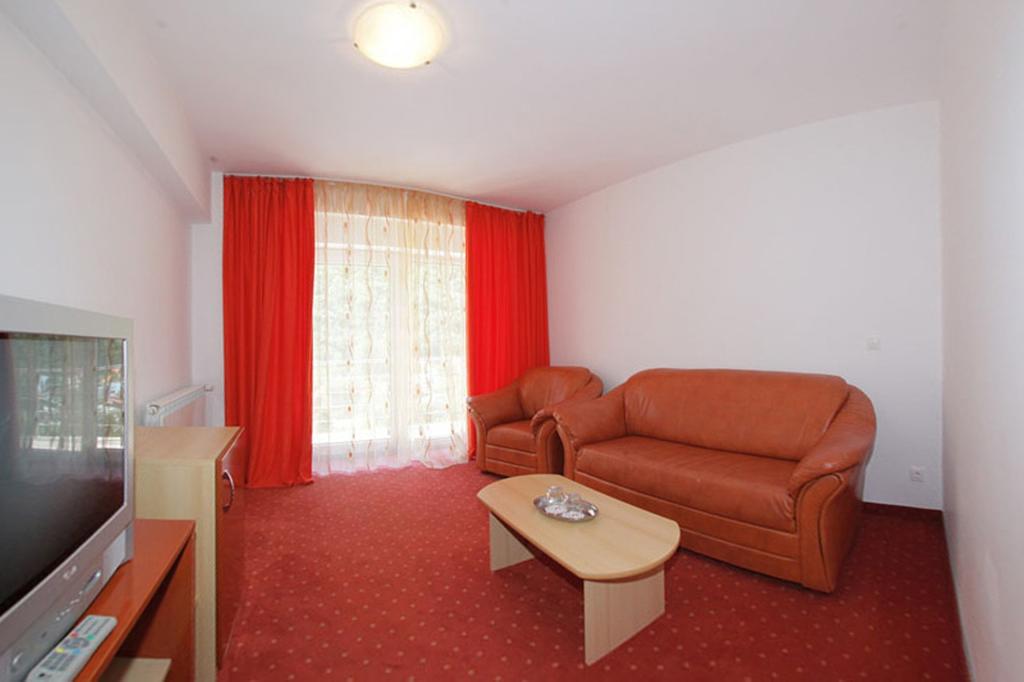 -Baza de tratament din incinta hotelului, este moderna si foarte bine dotata, accesul in ea se poate face si cu ajutorul liftului, direct de la nivelul etajului unde sunteti cazati. Aici medici si personal calificat va stau la dispozitie pentru a va indruma si a va efectua tratamentul de care aveti nevoie conform cu afectiunile dobandite.