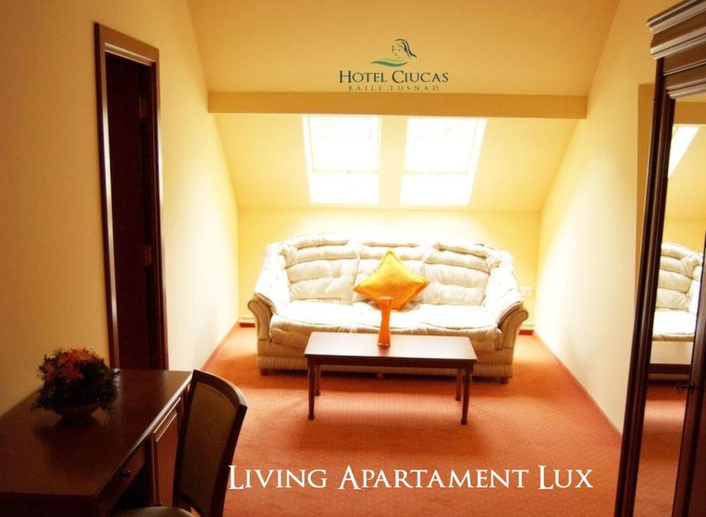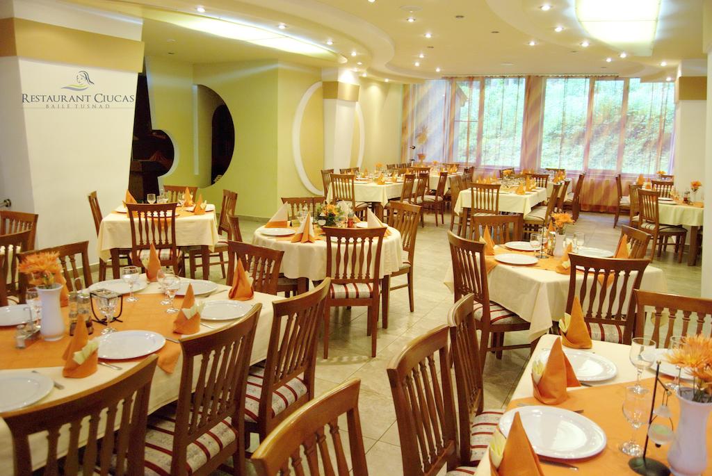 Hotelul Ciucas situat în centrul statiunii Baile Tusnad într-un cadru natural este una din cele mai moderne unitati de cazare de 3 stele din statiune, dispune de 228 locuri de cazare, structurate în 97 camere duble, 13 apartamente si 4 partamente de lux, dotate la standardele europene de 3 stele, toate mobilate si echipate conform standardelor internationale si beneficiind de conditii excelente.