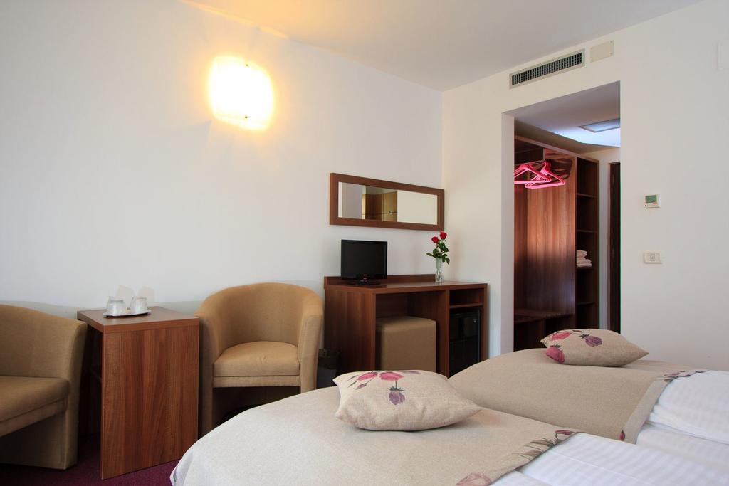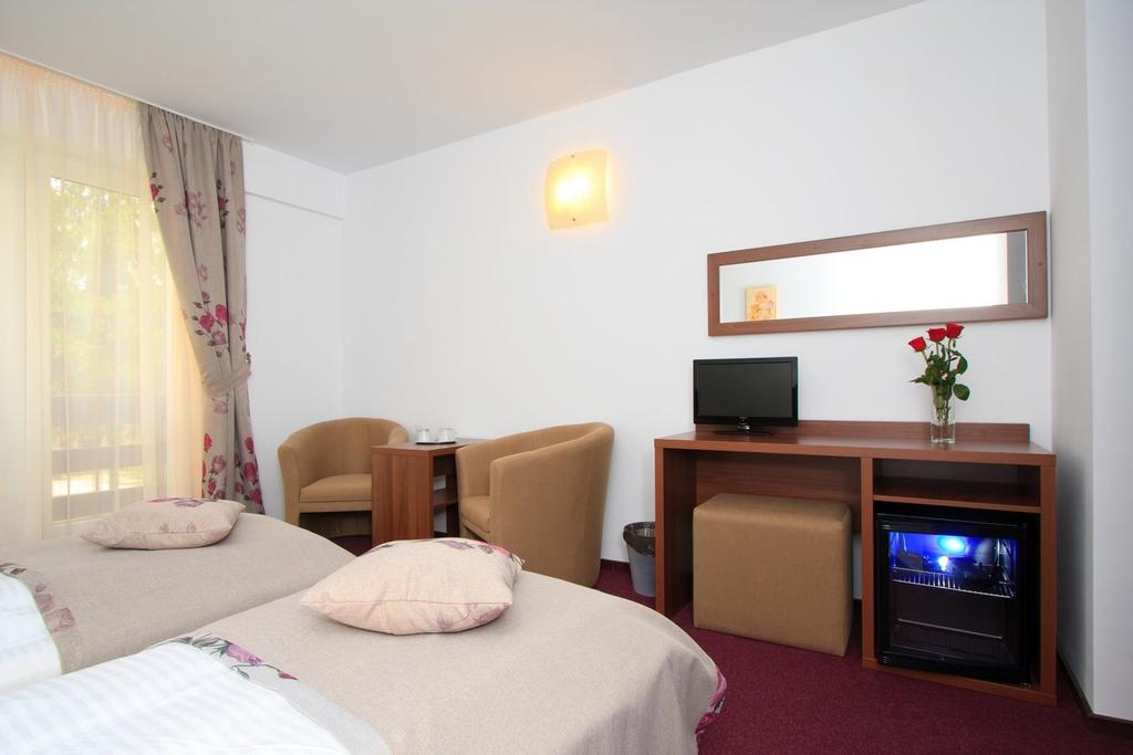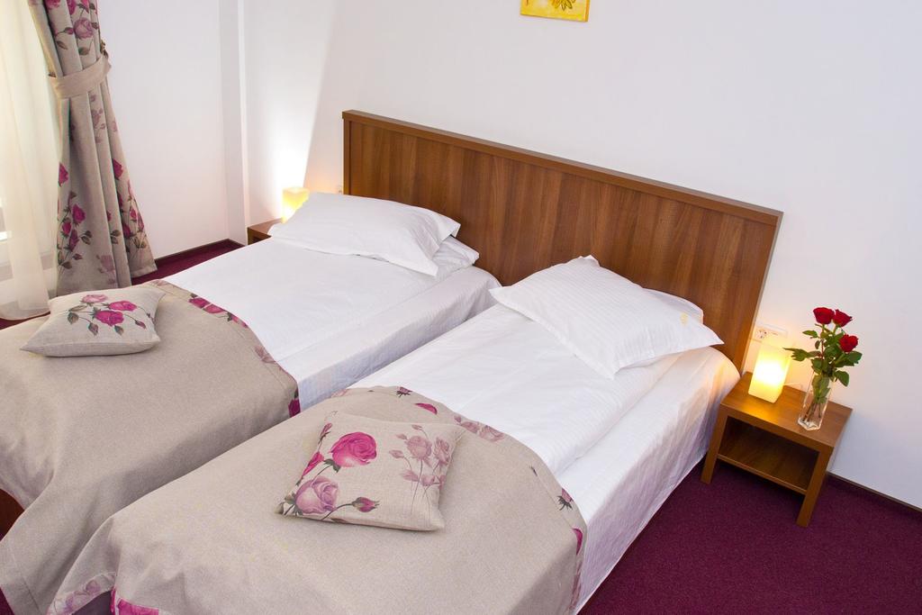 Hotelul ofera spre cazare 30 de locuri repartizate in 15 de camere duble twin. Fiecare incapere detineun TV LED, cablu TV, telefon, acces la internet, sistem încălzire centrală, linie telefonică internațională, baie cu cabină de duș, uscător de păr, sistem automat de ventilație.