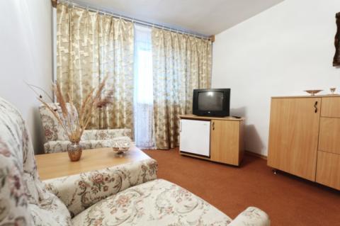 In incinta hotelului se afla si o moderna si impunatoare baza de tratament(avand767 mp), oferind servicii precum kinetoterapie, hidroterapie, masoterapie, electroterapie, termoterapie, impachetari cu namol terapeutic, bai minerale carbogazoase si bicarbonate, mofete si solarii care desigur contribuie la ameliorarea starii dumneavoastra de sanatate.
