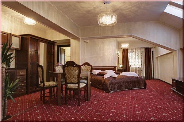 - 7 apartamente - Dotate cu mobilier masiv din lemn,telefon, cablu tv, mini-bar, televizor LCD, acces Internet de mare viteză. Băile au cabine de duș și uscător de păr. Room service-ul este valabil non-stop.