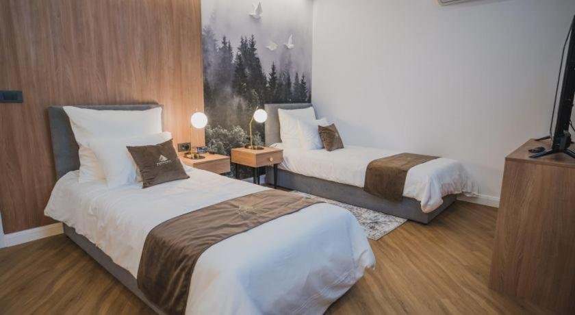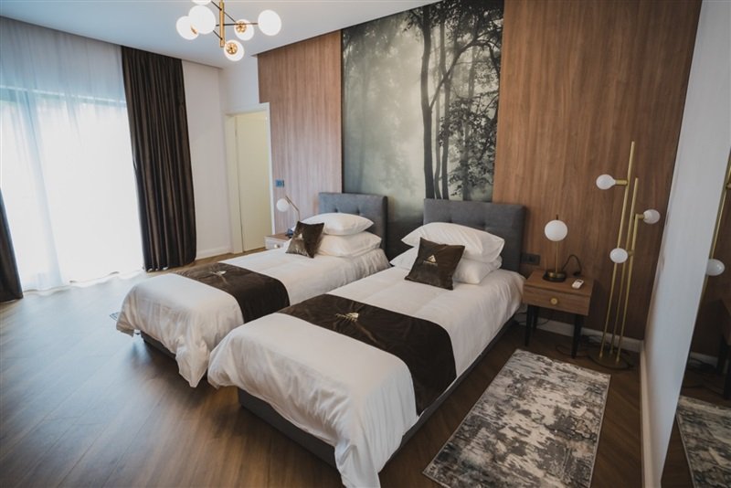 Exista 4 tipuri de apartamente (Standard, Deluxe, Premium si Executive), fiecare este format din doua camere, dormitor si living, unele au balcon/terasa, design-ul este diferit in functie de tipul ales, unele au semineu, bar, toate au aer conditionat si zona de pregatit si servit masa. Apartamentele Executive au jacuzzi pe terasa.