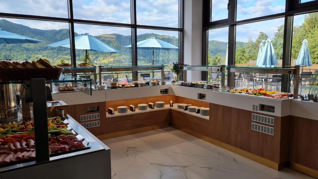 Restaurantul are o capacitate de 70 de locuri si o terasa la fel de generoasa, unde turistii pot lua masa avand in fata o panorama superba asupra lacului Colibita, indiferent de anotimp.