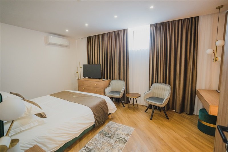 Apartament: format dintr-un dormitor si un living, dormitorul are doua paturi twin ce pot fi apropiate, iar living-ul o canapea extensibila, de asemenea exista si o zona pentru preparat si servit masa (cuptor cu microunde, fierbator, aparat de cafea), baie proprie cu dus, balcon sau terasa, aer conditionat