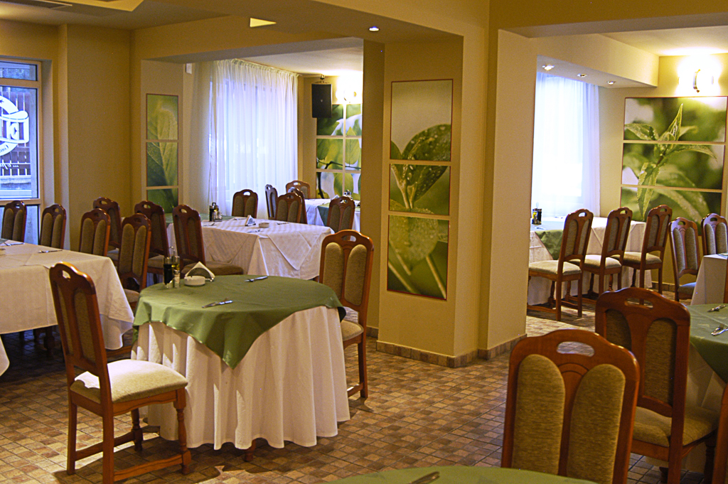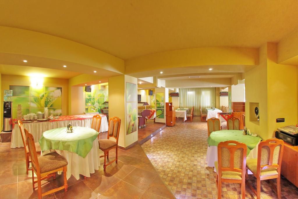 Restaurantul hotelului este elegant si are o capacitate de 100 de locuri, terasa-restaurant de 100 de locuri iar barul 30 de locuri.