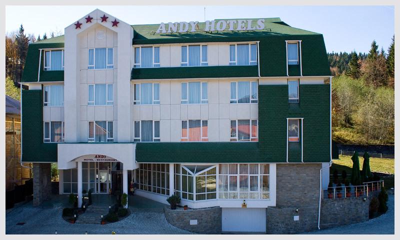 Hotelul Andy se afla la numai 1 km distanta de Predeal, la 5 minute de centrul statiunii, pe drumul ce duce catre Cabana Trei Brazi. Hotelul ofera spre cazare 27 Camere Duble si Twin, 3 Apartamente, 1 Apartament VIP