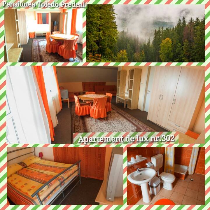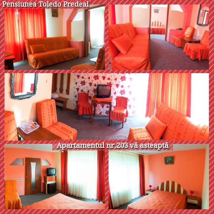 Pensiunea Toledo, imbinand linistea zonei si peisajele minunate cu un confort deosebi, ofera spre cazare camere spatioase, luminoase, decorate cu gust rafinat,repartizate in camere duble-cu pat matrimonial, camere triple cu pat matrimonial si canapea, apartament cu pat matrimonial si canapea .