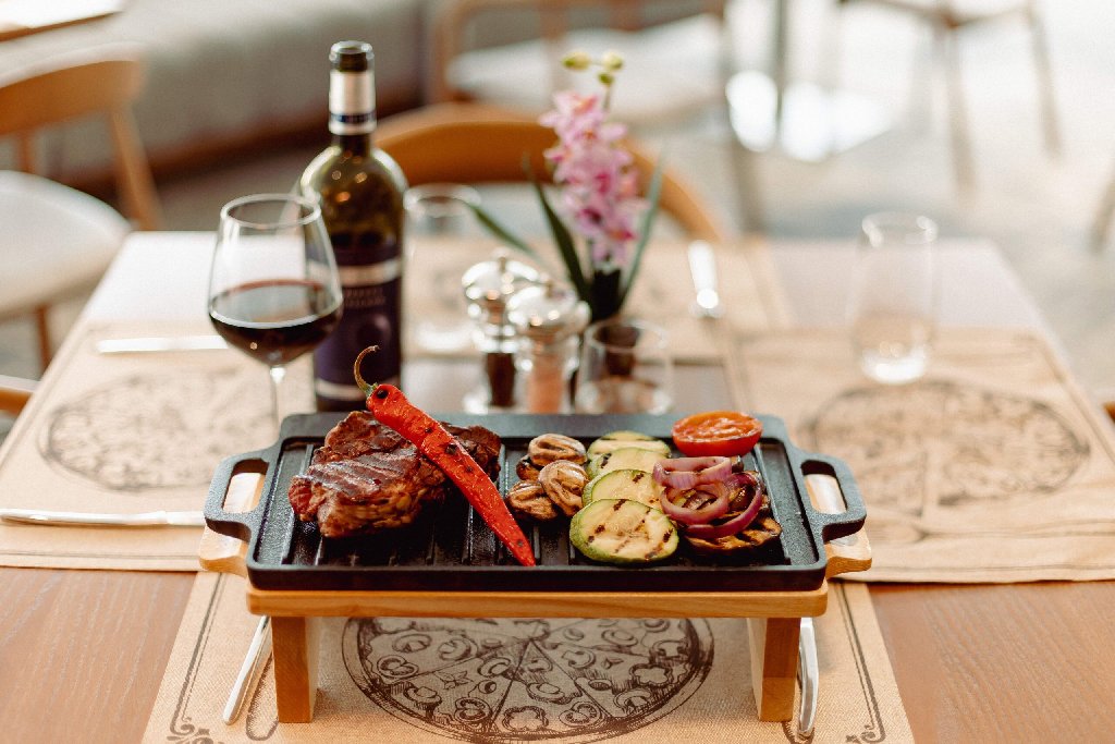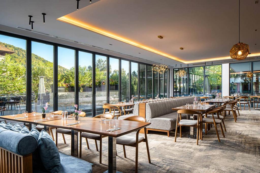 Restaurantul hotelului servește preparate italiene și internaționale, precum și deserturi de casă. Micul dejun tip bufet este servit zilnic. Oaspeții pot savura, de asemenea, o băutură la bar. În timpul verii, oaspeții se pot relaxa pe terasa în aer liber a Hotelului Alexandrion Experience.