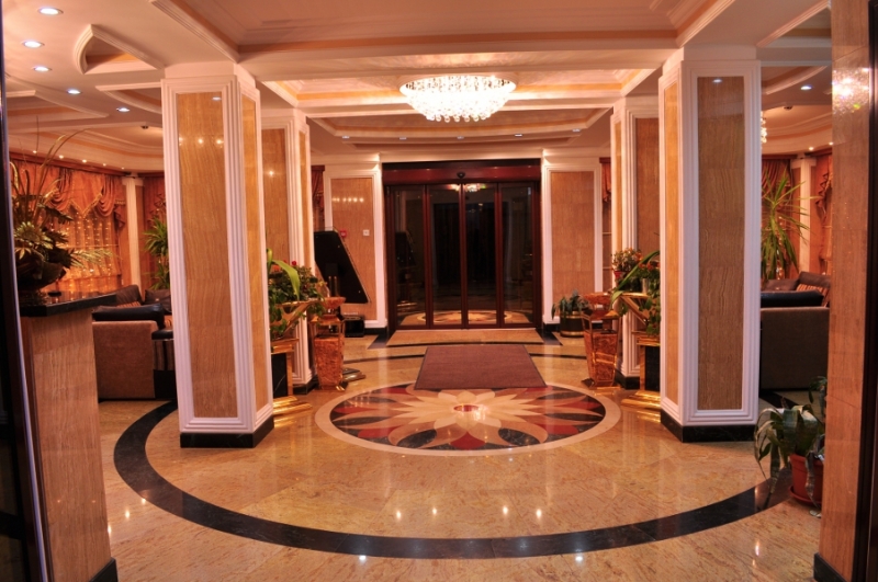 Decorul hotelului, este accentuat cu detalii din lemn și marmura, fiind decorat portrete reflectand plecarea si intoarcerea lui Noe